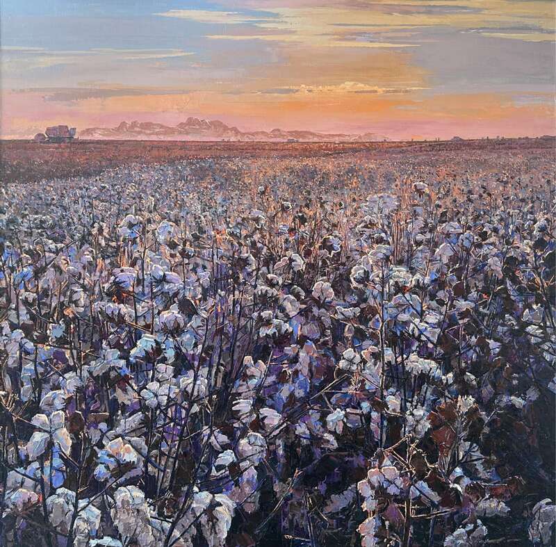 展览以“铸牢中华民族共同体意识”为主线,将兵团精神和胡杨精神、老兵精神融入艺术表达。从魏德友老人的界碑坚守,到新时代青年扎根边疆的身影;从广袤棉田的温暖洁白,到胡杨林的生命金黄……兵团70余年的奋斗史诗在笔墨色彩中“立”了起来、“活”了起来。