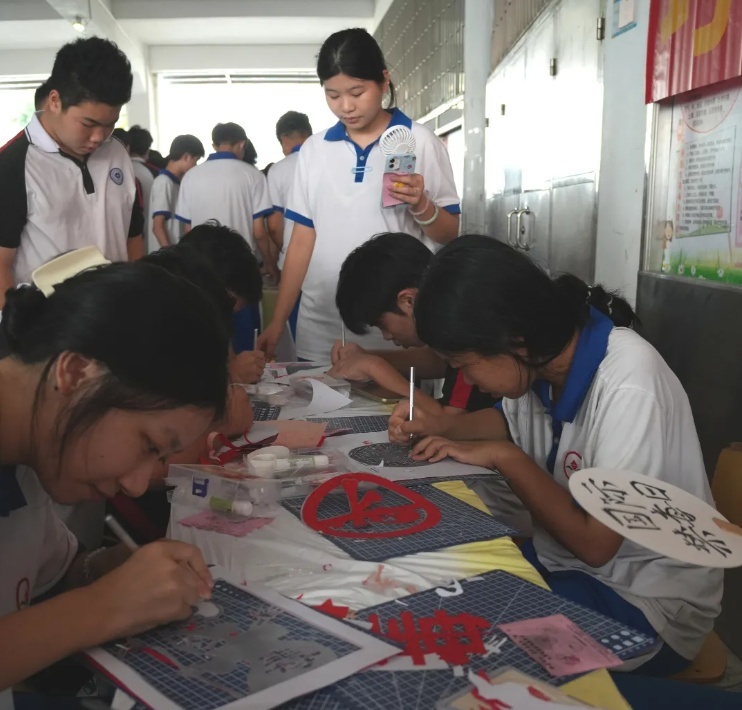 剪纸是国家级非物质文化遗产、人类非物质文化遗产代表作。同学们在现场老师的指导下,将禁毒元素与剪纸文化相融合,呈现出别样的国风剪纸。