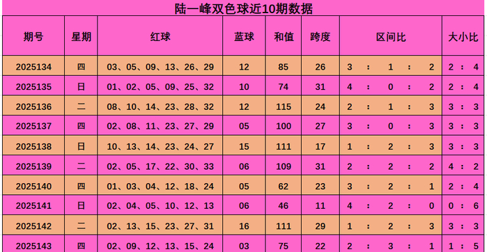 陆一峰双色球本期推荐: