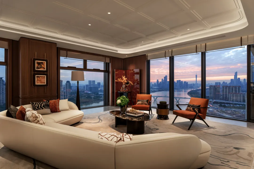 如位于琶洲中心高区的琶洲公馆,坐拥360°环幕视野,眼前是琶洲CBD的摩天建筑群,脚下是珠江与黄埔涌的澎湃涌动,拥享城市盛景,为城市精英提供了全新的生活与商务范本;与琶洲公馆一江之隔的天赋壹号,坐落于广州国际金融城黄金中轴首排,建面约355—654㎡的奢阔会客厅,以270°环幕视野收藏城芯与江景,同时配备高端圈层社交平台“天赋会”,引领金融城生活新方式。